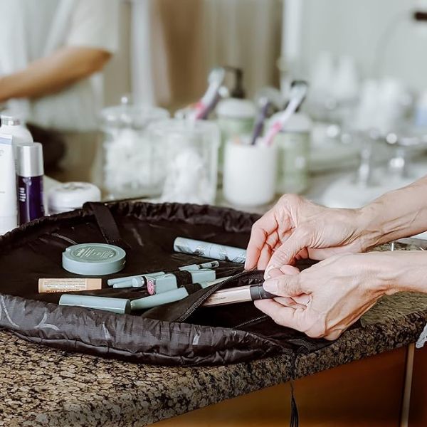 Rimanete organizzati in modo glamour con GLAMSY! L’innovativo design a cordoncino del nostro astuccio si espande per facilitare l’accesso a tutti i vostri oggetti di bellezza. Dite addio ai contrattempi del trucco e date il benvenuto a un’organizzazione compatta e senza sforzo!