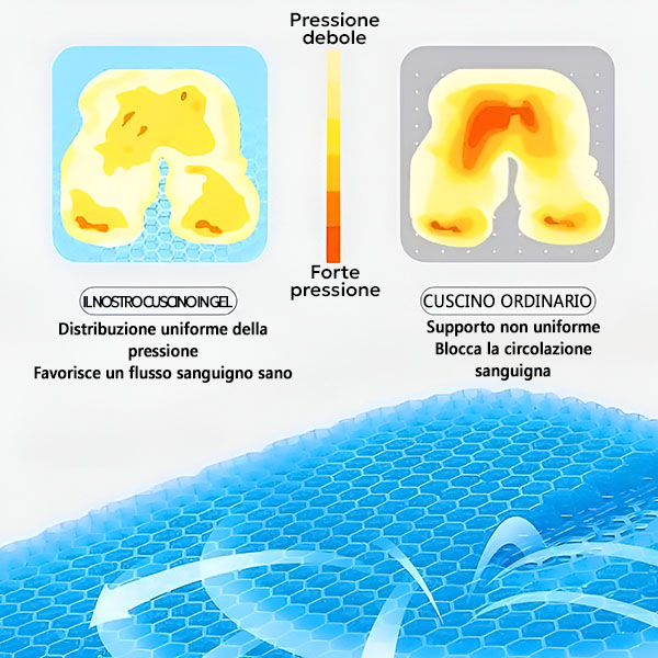 💨 Tecnologia avanzata del gel – Effetto rinfrescante e pressione uniforme per sedute confortevoli e prolungate.