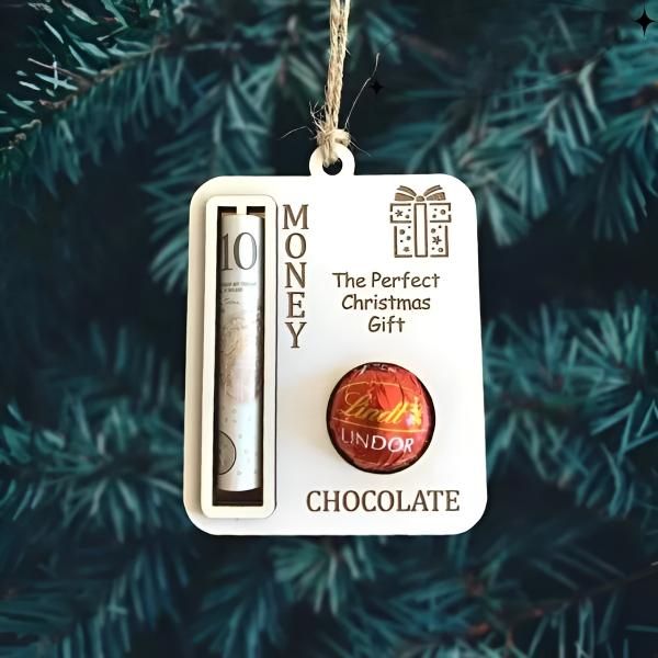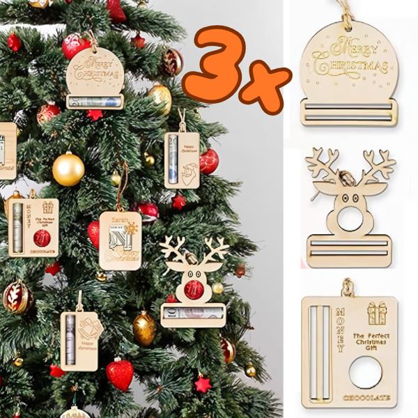 📦 La confezione include: 3x Decorazioni natalizie con fermasoldi (Disegni: 1x Renna, 1x Scatola regalo, 1x Pallina con testo “Buon Natale”)