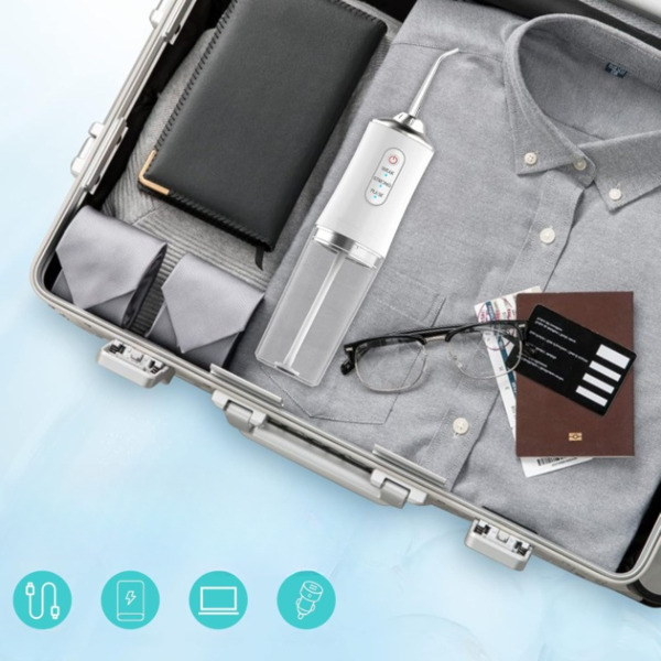 Con un peso di soli 350 g, questo irrigatore orale portatile si adatta senza problemi a qualsiasi borsa da viaggio.