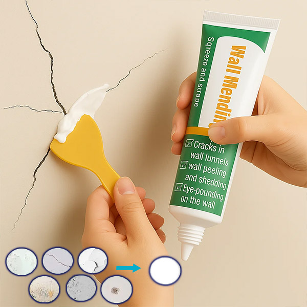 Lo stucco del ferramenta significa mescolare, una spatola che non hai, aspettare una notte e vedere ancora il bordo. WALLFIX si applica direttamente dal tubo con lo strumento incluso: premi, liscia, fatto in meno di due minuti per riparazione. In 4 ore è asciutto, carteggiabile e pronto per la vernice. Il muro sembra come se non fosse mai successo nulla.