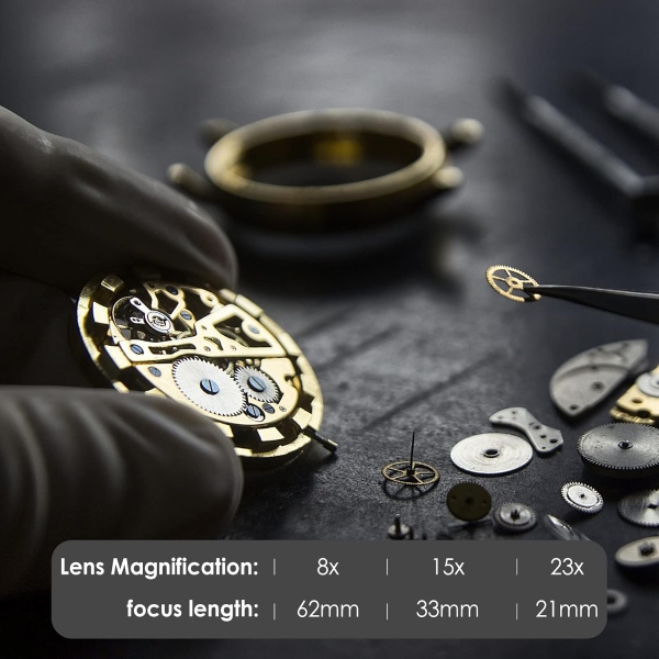 Con lenti da 8x, 15x e 23x, questa lente d’ingrandimento ti permette di regolare facilmente per diverse attività, garantendo visioni chiare e precise.