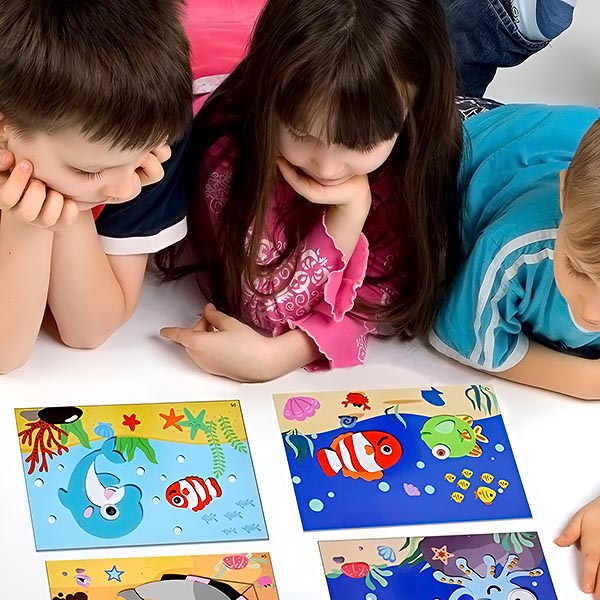 Non sono necessarie colla o forbici, quindi non dovete preoccuparvi che il vostro bambino si faccia male. Basta staccare l’adesivo e incollarlo sul cartone, strato per strato, secondo l’immagine richiesta.