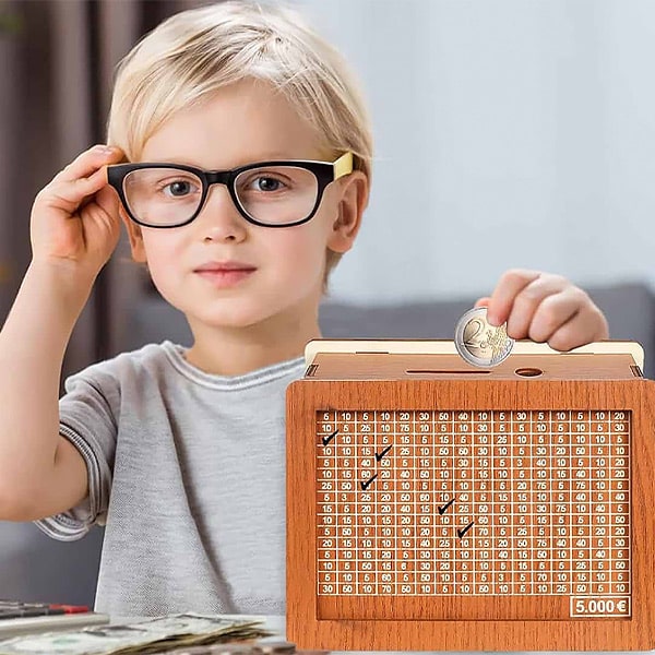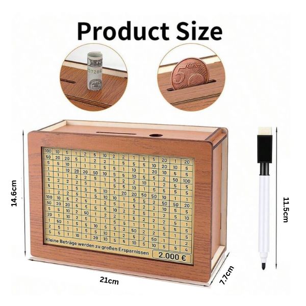 1 x COINSAVE Scatola di legno per il risparmio di denaro