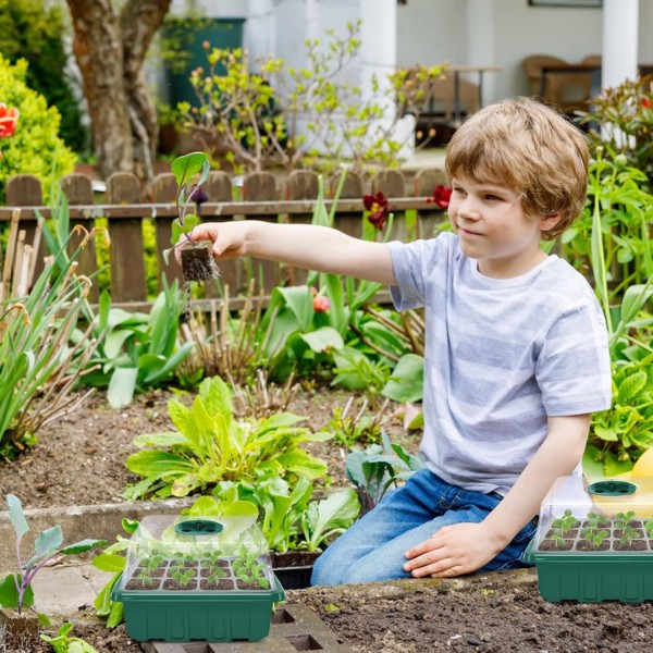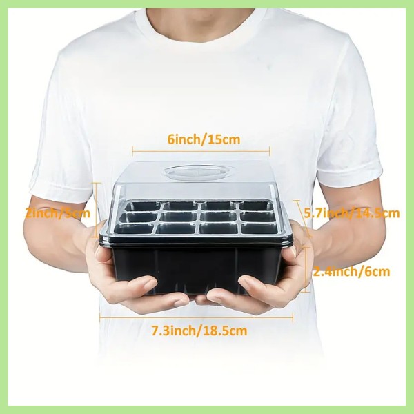 Ogni vassoio ha 12 fori e un coperchio con interruttore di ventilazione. Ora puoi controllare i livelli di umidità e garantire il miglior ambiente per le tue piantine. Coltiva radici sane e ben aerate per piante più forti.